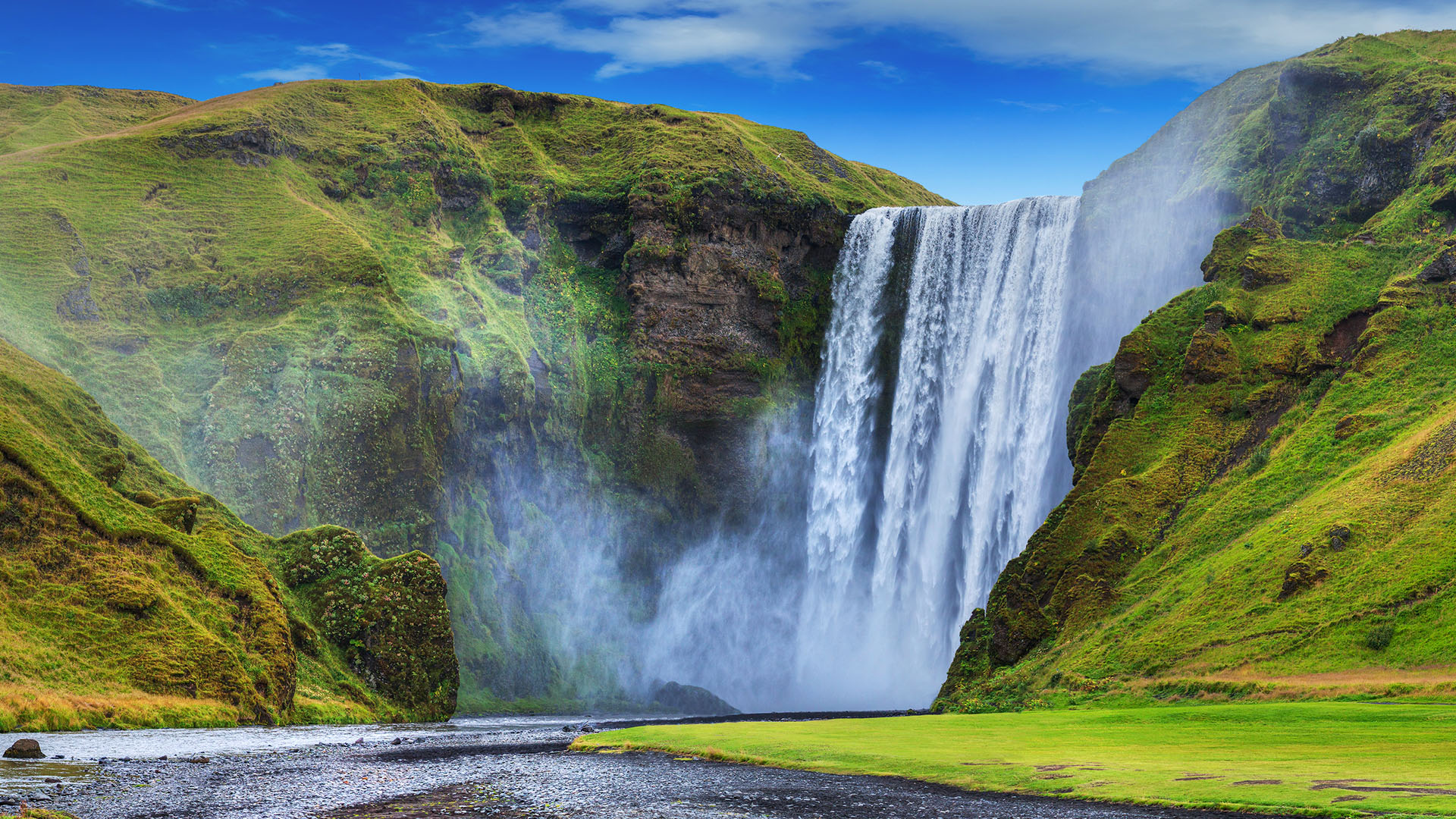 Besuch des schwarzen Strands Vikurfjara, Fahrt zu den Wasserfällen von Seljandsfoss (ein Spaziergang unter dem Wasserfall ist ein Muss!) und Skogafoss sowie zum Fjadargljufur Canyon.